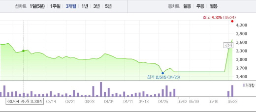 SWH는 24일 오전 9시35분 현재 전일 대비 3.48%(1만3500원) 상승한 37만4000원에 거래되고 있다. SWH는 전 거래일에도 가격제한폭인 29.82%까지 올랐다.