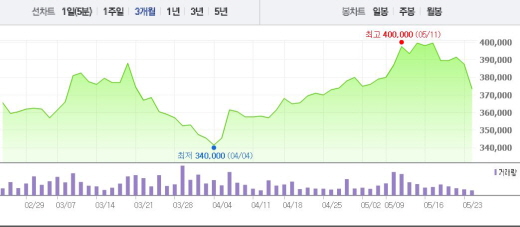 CJ제일제당은 24일 오전 9시35분 현재 전일 대비 3.48%(1만3500원) 하락한 37만4000원에 거래되고 있다.