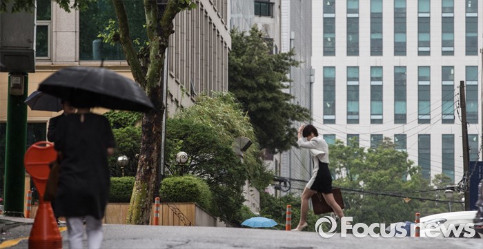 (서울=포커스뉴스) 전국이 흐리고 비가 내리는 24일 오전 서울 서초구 서초역 인근에서 시민들이 발걸음을 재촉하고 있다.