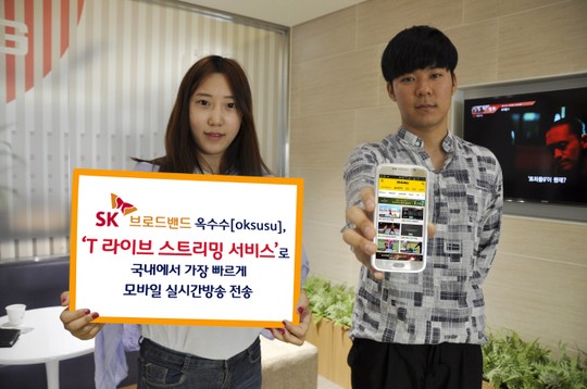 SK브로드밴드는 24일 모바일 동영상 플랫폼 옥수수의 실시간 방송에 'T라이브 스트리밍 서비스'를 적용해 전송시간을 최대 3초까지 단축한다고 밝혔다. T라이브 스트리밍은 SK텔레콤 등이 주도하고 있는 차세대 미디어 전송 규격으로서 고화질·저지연 모바일 방송 서비스에 최적화된 기술이다.