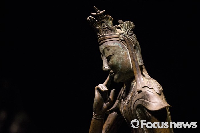 (서울=포커스뉴스) 24일 오전 서울 용산구 국립중앙박물관 기획전시실에서 열리고 있는 '한일국보 반가사유상의 만남' 전시에 우리나라 국보 제78호 금동반가사유상이 전시돼있다.