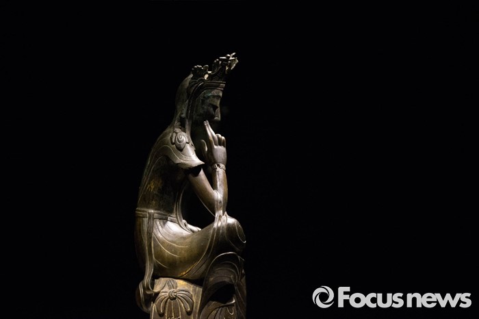 (서울=포커스뉴스) 24일 오전 서울 용산구 국립중앙박물관 기획전시실에서 열리고 있는 '한일국보 반가사유상의 만남' 전시에 우리나라 국보 제78호 금동반가사유상이 전시돼있다.