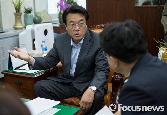 (서울=포커스뉴스) 정진석 새누리당 원내대표와 권성동 환노위 여당 간사가 24일 오전 서울 여의도 국회에서 가습기살균제 피해자와 가족 모임 면담에 앞서 대화하고 있다.