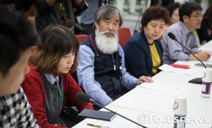 (서울=포커스뉴스) 가습기 살균제 피해자 가족 모임이 24일 오전 서울 여의도 국회 새누리당 원내대표실에서 열린 가습기살균제 피해자와 가족 모임 면담에 참석하고 있다.