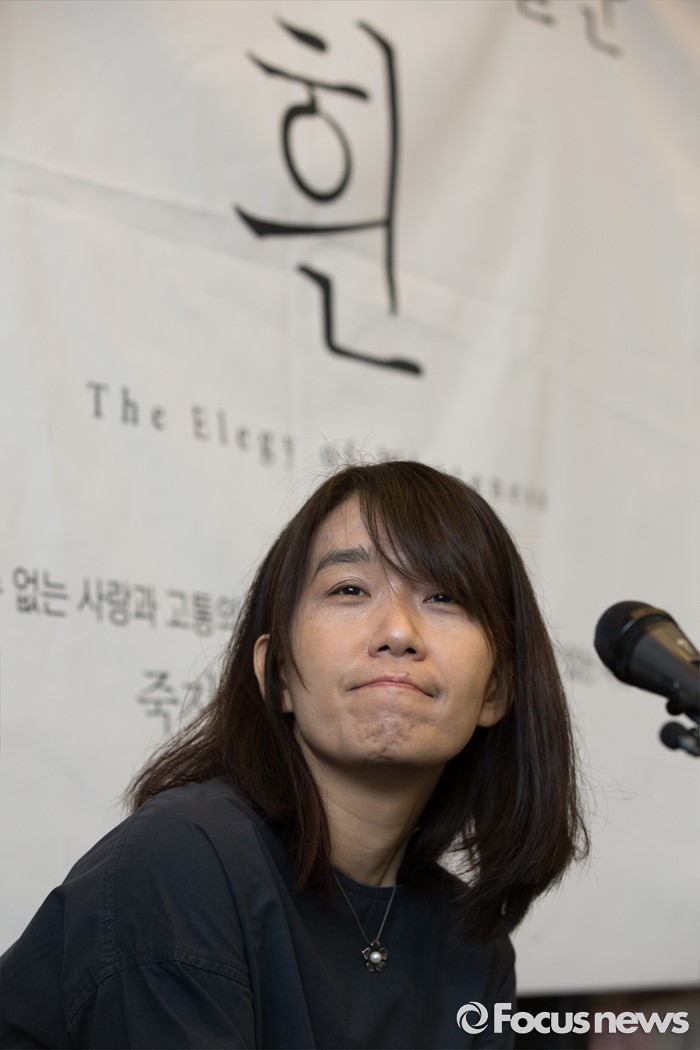 (서울=포커스뉴스) 소설' 채식주의자'로 세계 3대 문학상인 맨부커상을 수상한 한강이 24일 오전 서울 마포구 카페 꼼마에서 열린 신작소설 '흰' 출간 기자간담회에서 취재진의 질문을 듣고 있다.