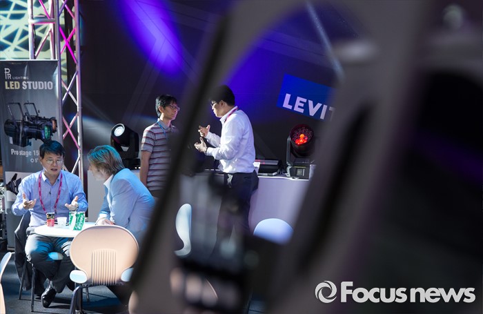(서울=포커스뉴스) 24일 오전 서울 강남구 코엑스에서 열린 '제26회 국제 방송·음향·조명기기 전시회'의 한 부스에서 관람객들이 조명에 대한 설명을 듣고 있다.