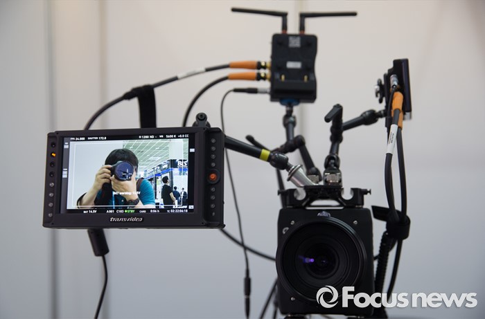 (서울=포커스뉴스) 24일 오전 서울 강남구 코엑스에서 열린 '제26회 국제 방송·음향·조명기기 전시회'에 와이파이를 이옹해 무선기기로 모니터링이 가능한 카메라가 전시되고 있다.