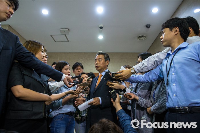 (서울=포커스뉴스) 정종섭 새누리당 당선자가 24일 오후 서울 여의도 국회에서 취재진에게 상시 청문회를 가능하도록 한 국회법 개정안이 행정부 침해 위헌소지가 있다는 설명을 하고 있다.