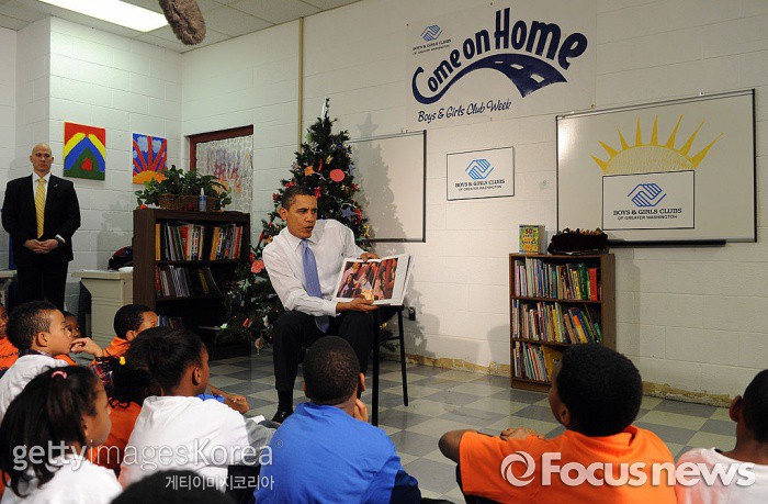 연구진은 “신발을 벗고 교실에서 생활하면 청소 횟수가 27% 감소했고 의자와 책상을 장만하는 비용 역시 줄일 수 있다"고 강조했다.버락 오바마 미국 대통령이 취임 첫 해인 2009년 12월 워싱턴 DC의 한 학교를 방문해 학생들에게 책을 읽어주고 있다. 영국 본머스대 연구진은 교실에서 실내화를 벗고 생활해야 학업 성취도가 더 높다는 연구 보고서를 내놓았다. (Photo by Roger L. Wollenberg-Pool/Getty Images)2016.05.24 ⓒ게티이미지/이매진스