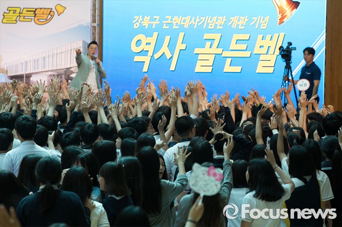 (서울=포커스뉴스) 24일 오후 서울 강북구 신일중학교 체육관에서 열린 근현대사기념관 개관 기념 '역사 골든벨'에 참석한 학생들이 예선전 O.X 퀴즈를 풀고 있다.