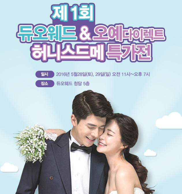 (서울=포커스뉴스) 웨딩컨설팅업체 듀오웨드는 28~29일 양일간 청담점에서 '허니스드메' 특가전을 개최한다고 24일 밝혔다.