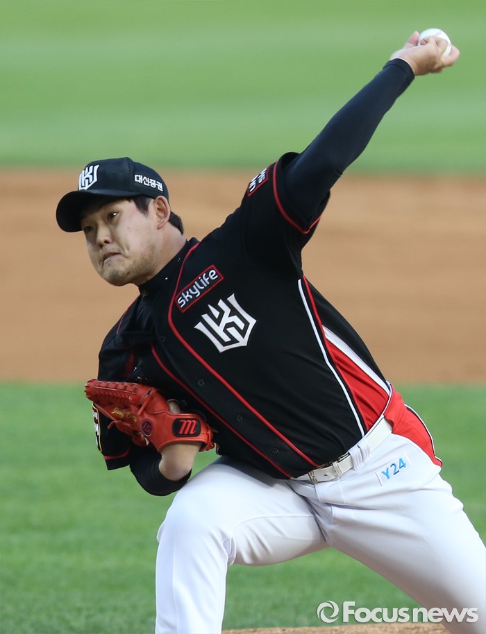 (서울=포커스뉴스) 24일 서울 잠실구장에서 열린 2016프로야구 kt-두산 경기에서 1회말 kt 선발투수 정대현이 투구하고 있다.