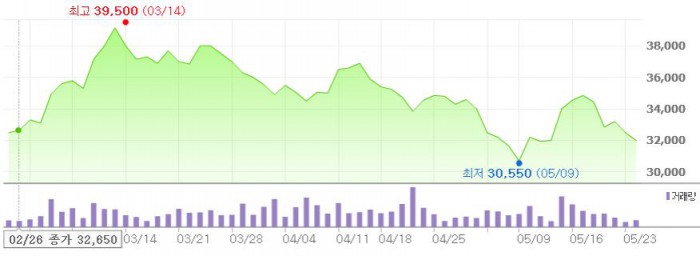 그는 그러면서 "괌은 저비용 항공사 점유율이 대형항공사 점유율을 넘어섰다"면서 "일본노선 점유율도 지속적으로 확대되고 있다"고 설명했다.최근 3개월간 제주항공 주가 추이 <그래픽출처=네이버>