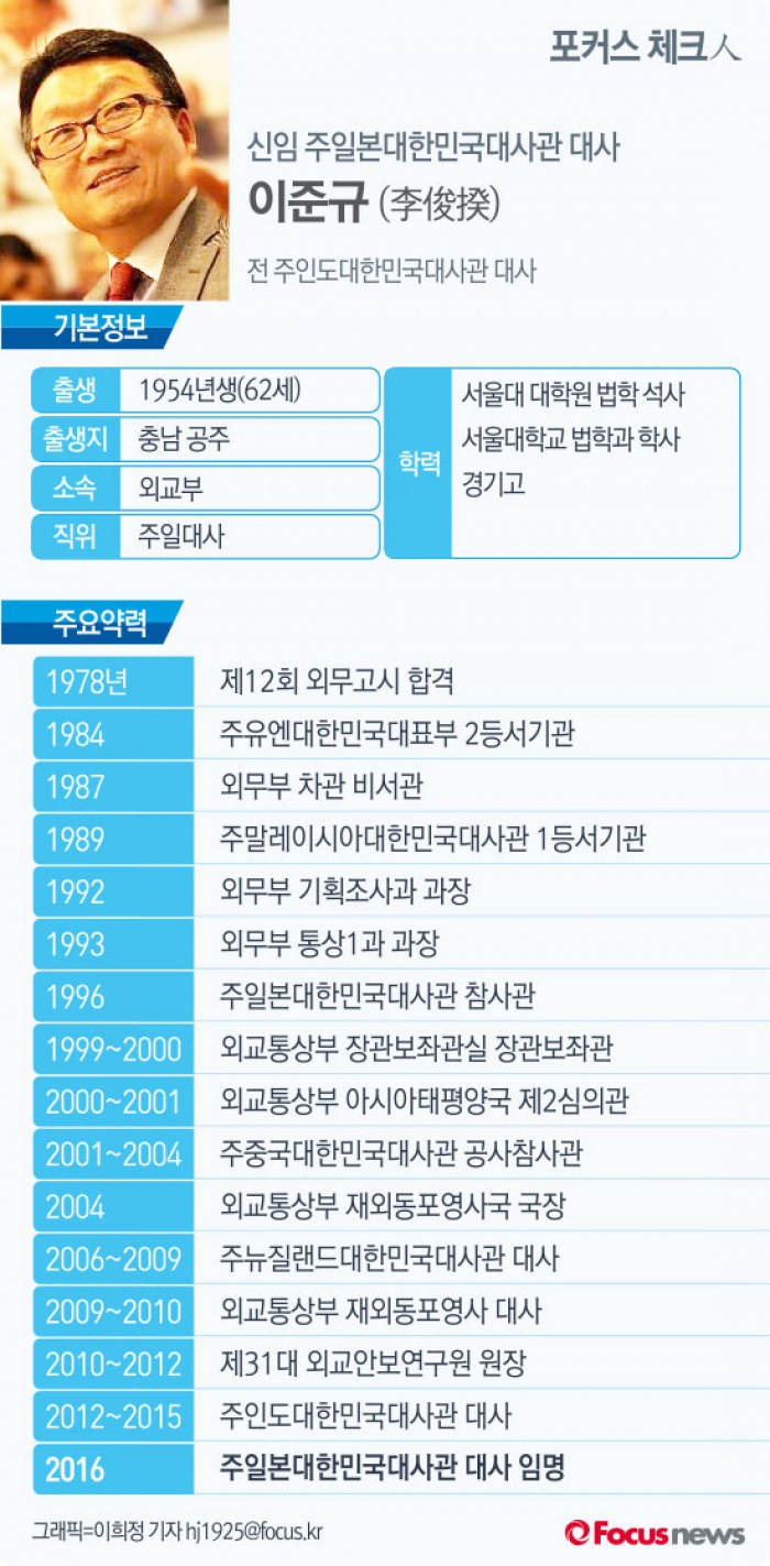 | △ [그래픽] 포커스 체크人 이준규 신임 주일본대한민국대사관 대사 |
