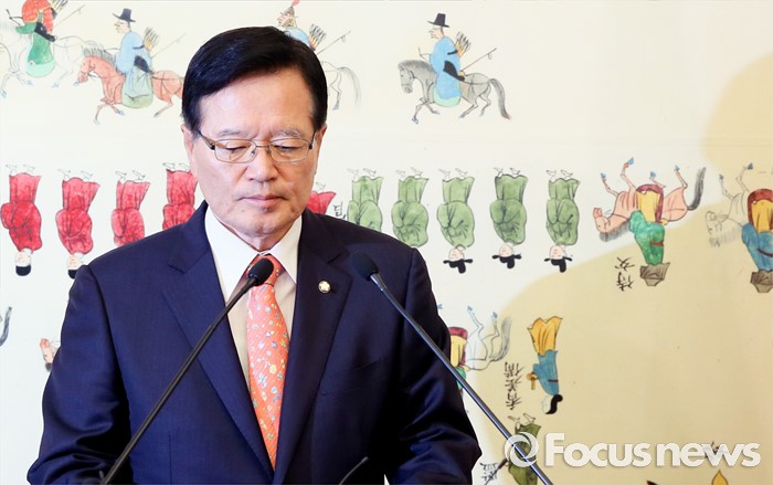 (서울=포커스뉴스) 정의화 국회의장이 25일 오전 서울 여의도 국회에서 퇴임 기자회견을 하고 있다. 오는 29일 임기 종료를 앞둔 정 의장은 이날 회견에서 19대 국회 후반기 국회의장직을 수행하며 느낀 소감 등을 전했다.