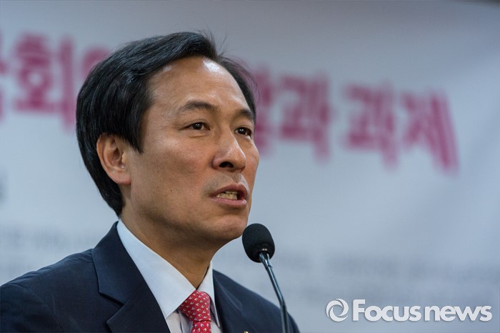 (서울=포커스뉴스) 우상호 더불어민주당 원내대표가 25일 오전 서울 여의도 국회의원회관에서 열린 '공영언론 지배구조 개선 위한 20대 국회의 역할과 과제 토론회'에 참석해 인사말을 하고 있다.