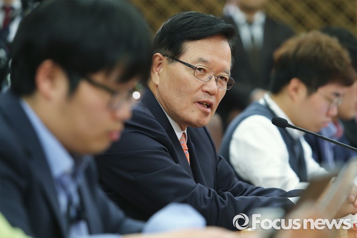 (서울=포커스뉴스) 정의화 국회의장이 25일 오전 서울 여의도 국회에서 퇴임 기자회견을 마친 뒤 취재진과 기자간담회를 하고 있다. 오는 29일 임기 종료를 앞둔 정 의장은 이날 회견에서 19대 국회 후반기 국회의장직을 수행하며 느낀 소감 등을 전했다.
