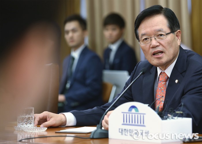 (서울=포커스뉴스) 정의화 국회의장이 25일 오전 서울 여의도 국회에서 퇴임 기자회견을 마친 뒤 취재진과 기자간담회를 하고 있다. 오는 29일 임기 종료를 앞둔 정 의장은 이날 회견에서 19대 국회 후반기 국회의장직을 수행하며 느낀 소감 등을 전했다.
