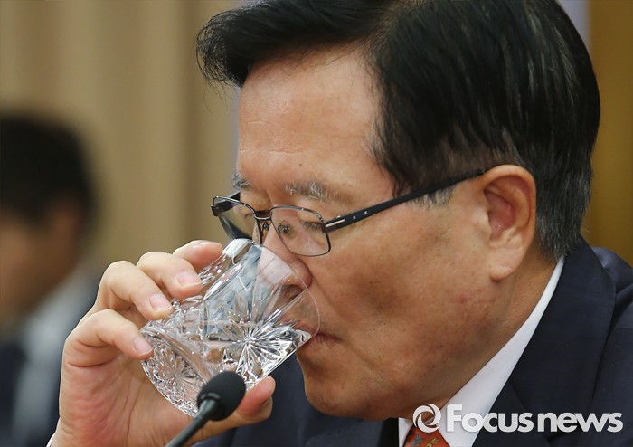 (서울=포커스뉴스) 정의화 국회의장이 25일 오전 서울 여의도 국회에서 퇴임 기자회견을 마친 뒤 취재진과 기자간담회 도중 물을 마시고 있다. 오는 29일 임기 종료를 앞둔 정 의장은 이날 회견에서 19대 국회 후반기 국회의장직을 수행하며 느낀 소감 등을 전했다.