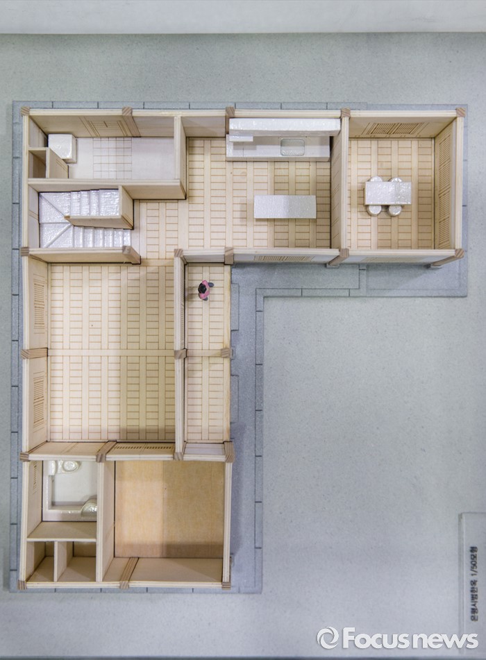 (서울=포커스뉴스) 25일 오전 서울 강남구 코엑스에서 열린 국토교통부 주최'2016 국토교통기술대전' 에 전시된 은평 시범한옥 모형.