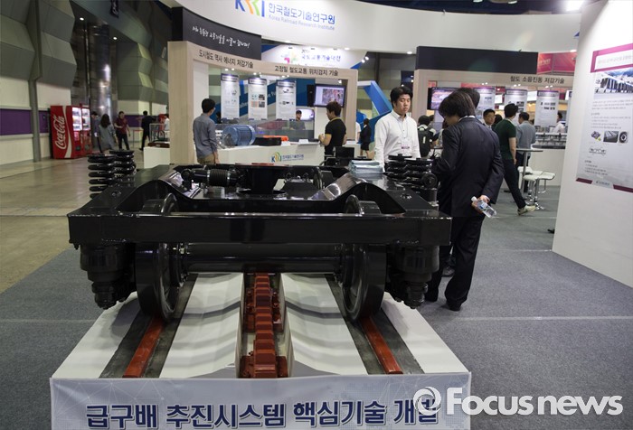 (서울=포커스뉴스) 25일 오전 서울 강남구 코엑스에서 열린 국토교통부 주최'2016 국토교통기술대전'을 찾은 관람객이 한국철도연구원 부스를 둘러보고 있다.