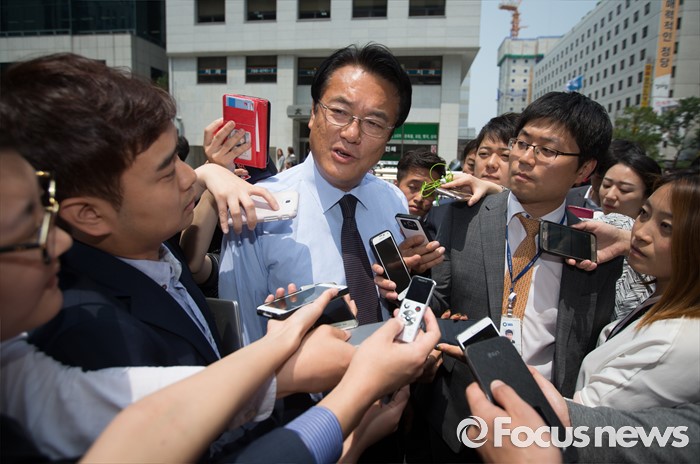 (서울=포커스뉴스) 정진석 새누리당 원내대표가 25일 오후 서울 여의도 새누리당 당사에서 당사 경비 및 의경 격려를 마친 후 취재진들의 질문을 받고 있다.