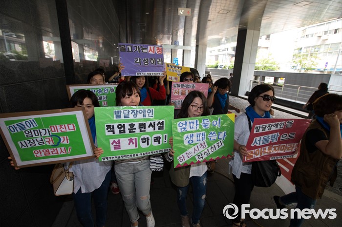 (서울=포커스뉴스) 25일 오전 서울 중구 서울시청 앞에서 서울시 장애인 부모회 회원들이 발달장애인 종합대책요구에 대한 기자회견이 열렸다.