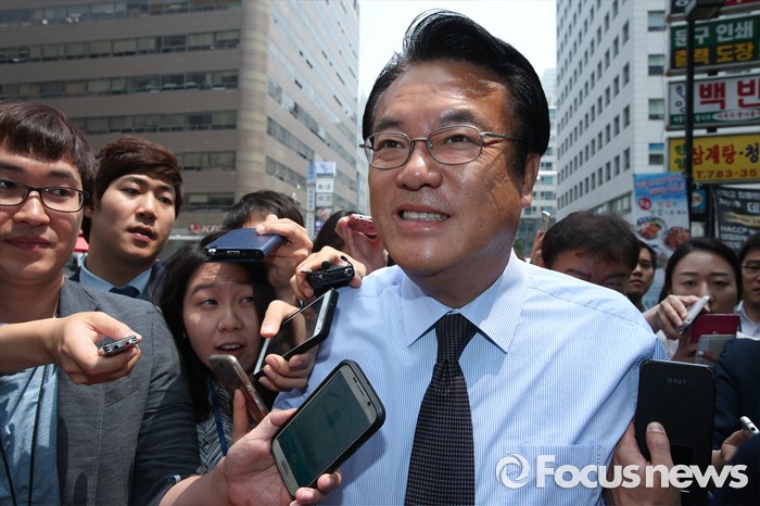 (서울=포커스뉴스) 정진석 새누리당 원내대표가 25일 서울 여의도 당사 앞에서 근무하는 경비중대를 격려 방문해 의경들과 오찬 간담회를 가진 뒤 취재진 질문을 받으며 이동하고 있다.