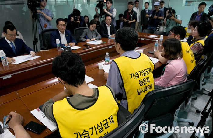 | △ 가습기 살균제 피해 모임과 면담하는 박지원 |