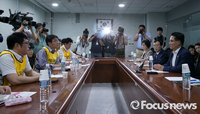 | △ 박지원, 가습기 살균제 피해자와 가족모임 면담 |