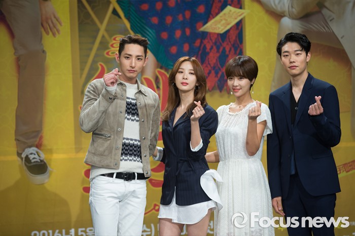 (서울=포커스뉴스) 25일 오후 서울 마포구 MBC상암사옥에서 열린 MBC 수목드라마 '운빨로맨스' 제작발표회에 참석한 배우 이수혁(왼쪽부터), 이청아, 황정음, 류준열이 포토타임을 갖고 있다.