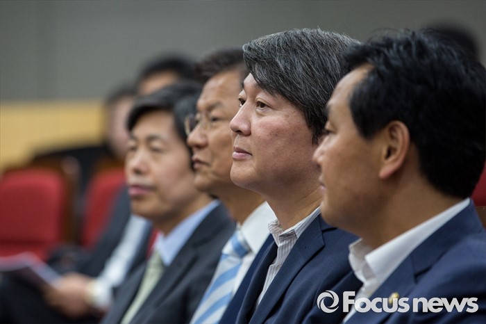 (서울=포커스뉴스) 안철수(오른쪽 두 번째) 국민의당 상임공동대표와 천정배(오른쪽 두 번째) 국민의당 공동대표가 25일 오후 서울 여의도 국회의원회관에서 열린 '제조물 책임법 문제점 개선방안 토론회'에 참석하고 있다.