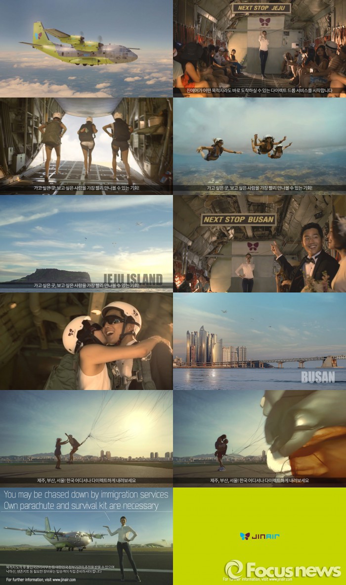 지난달 대형 수송기를 통해 승객을 스카이 다이빙으로 떨어뜨리는 페이크 홍보 영상을 선보이기도 했던 진에어의 마케팅 전략은 '딜라이트(Delight : 즐거움을 주다)'라는 슬로건을 걸고 있다.