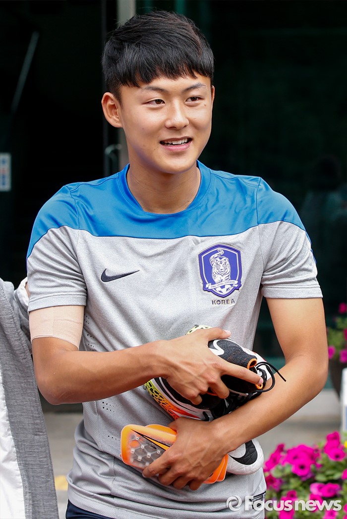 (파주=포커스뉴스) 이승우(18, 바르셀로나 후베닐A)가 25일 오후 경기도 파주 NFC에서 진행된 U-18(18세 이하) 축구대표팀 소집 훈련에 참석하고 있다.