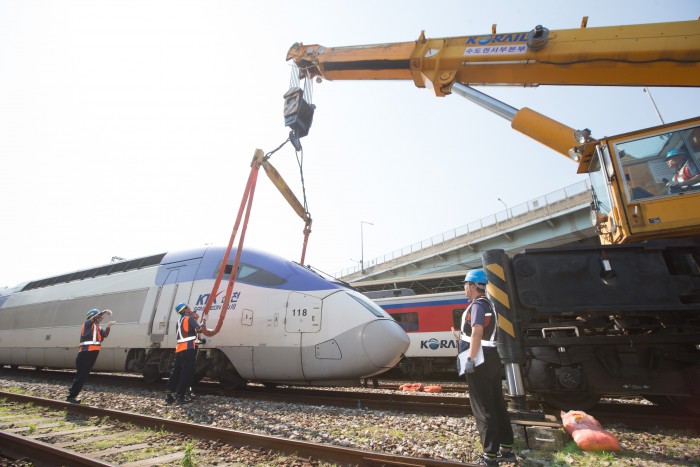 한국철도공사(코레일) 관계자는 '이번 사고의 원인은 기관사의 실수로 인한 선로전환기 파손으로 추정되고 있다"며 "정확한 사고 원인은 국토부항공철도조사위원회에서 조사를 통해 밝혀질 것"이라고 말했다.국토부와 코레일이 '2016 재난대응 안전한국훈련'의 일환으로 19일 영등포역에서 고속열차 대형사고 대응역량 강화를 위한 유관기관 합동훈련을 시행하고 있다.<사진제공=코레일>
