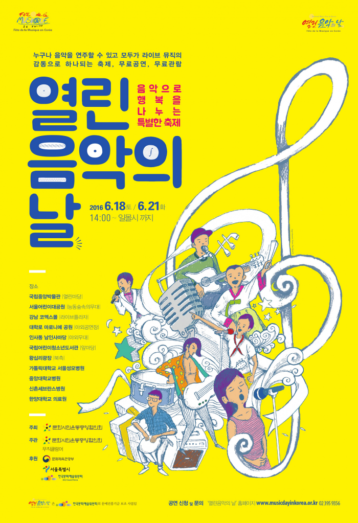 '열린 음악의 날(Fête de la Musique, 국제음악축제)'은 1982년 프랑스 문화부장관 자크 랑의 제안으로 시작돼 전 세계 100여 개국, 700여 개의 도시가 참여하는 세계적인 라이브 음악축제다. 한국은 지난 2014년 첫 회를 시작으로 올해 3회째 참여하고 있으며 문화체육관광부, 서울특별시, 한국문화예술위원회의 후원으로 서울 지역 11곳에서 진행된다.