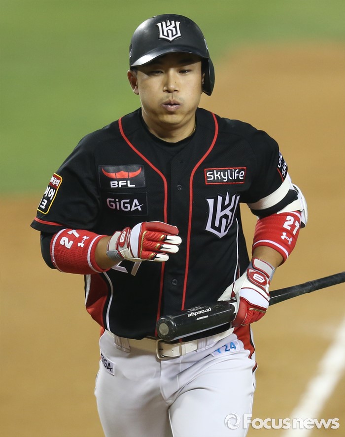 (서울=포커스뉴스) 25일 서울 잠실구장에서 열린 2016프로야구 kt-두산 경기 7회초 kt 오정복이 좌월 솔로 홈런을 치고 홈인하고 있다.