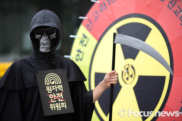 (서울=포커스뉴스) 26일 오전 서울 종로구에 위치한 광화문 KT빌딩 앞에서 그린피스가 주최하는 '핵없는 사회를 위한 공동 행동, 탈핵 시민 만민공동회' 퍼포먼스가 열리고 있다.