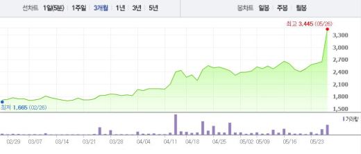 재영솔루텍은 26일 오전 9시28분 현재 전일 대비 30.00%(795원) 상승한 3445원에 거래 중이다. 재영솔루텍은 20일부터 이날까지 5거래일 연속 상승세를 보이며 순항 중이다.