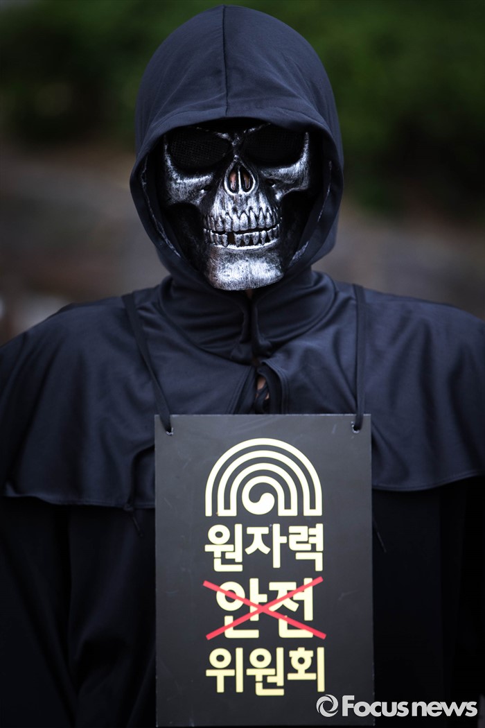 (서울=포커스뉴스) 26일 오전 서울 종로구에 위치한 광화문 KT빌딩 앞에서 그린피스가 주최하는 '핵없는 사회를 위한 공동 행동, 탈핵 시민 만민공동회' 퍼포먼스가 열리고 있다.
