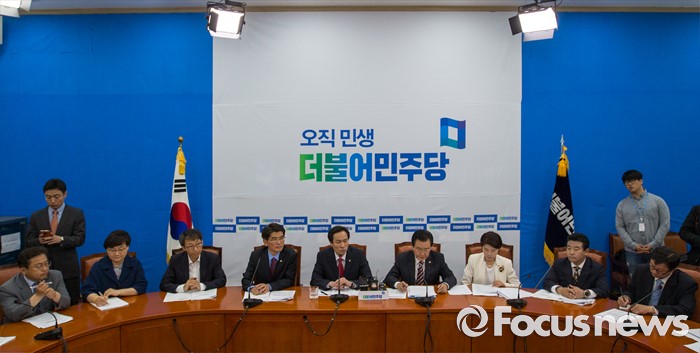 (서울=포커스뉴스) 우상호(가운데) 더불어민주당 원내대표가 26일 오전 서울 여의도 국회에서 열린 정책조정회의에 참석해 모두발언 하고 있다.