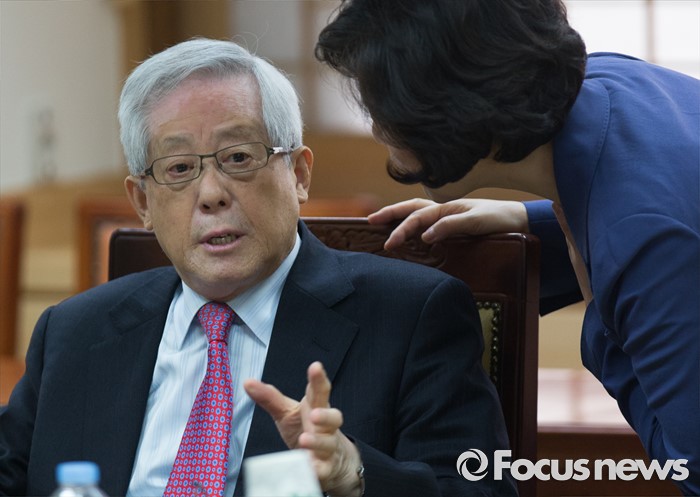 (서울=포커스뉴스) 송위섭(왼쪽) 노사정위원회 노동시장구조개선특위 위원장과 강정애 숙명여대 교수가 26일 오전 서울 종로구 정부서울청사 내 노사정 대회의실에서 열린 노동시장구조개선특별위원회 제26차 전체회의에 참석해 대화를 나누고 있다.