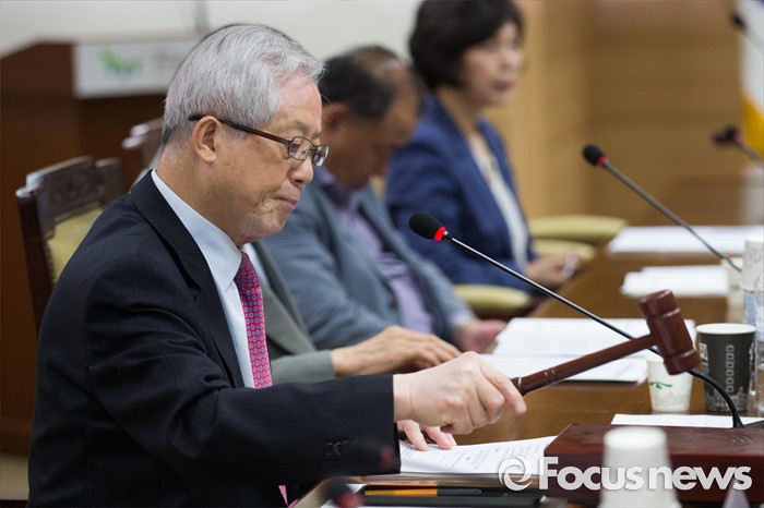 (서울=포커스뉴스) 송위섭(왼쪽) 노사정위원회 노동시장구조개선특위 위원장이 26일 오전 서울 종로구 정부서울청사 내 노사정 대회의실에서 열린 노동시장구조개선특별위원회 제26차 전체회의에 참석해 의사봉을 두드리고 있다.