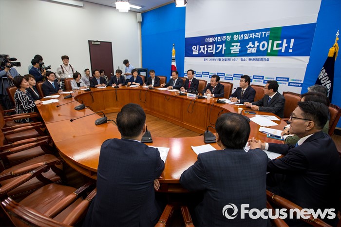 (서울=포커스뉴스) 변재일 더불어민주당 정책위의장이 26일 오전 서울 여의도 국회에서 열린 '청년일자리 TF회의'에 참석해 발언을 하고 있다.