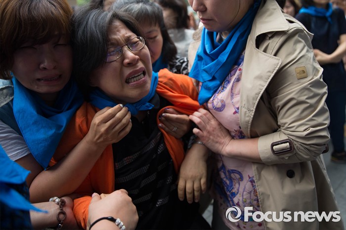 (서울=포커스뉴스) 26일 오전 서울시청 정문앞에서 전국장애인 부모연대와 서울특수학교학부모협의회원들이 발달장애인 정책 수립을 촉구하며 삭발식을 한 뒤 항의의 의미로 머리카락을 서울시에 전달하려고 하자 경찰병력이 막아서고 있다.