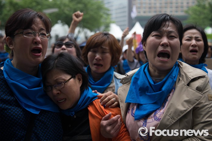 (서울=포커스뉴스) 26일 오전 서울시청 정문앞에서 전국장애인 부모연대와 서울특수학교학부모협의회원들이 발달장애인 정책 수립을 촉구하며 삭발식을 한 뒤 머리카락을 서울시에 전달하려고 하고 있다.