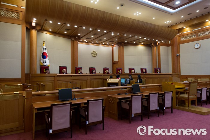 (서울=포커스뉴스) 26일 오후 서울 종로구 헌법재판소 대심판정에서 박한철 헌법재판소장이 국회선진화법 권한쟁의 심판 선고 및 통합진보당 해산결정 재심 선고를 위해 입장하고 있다.
