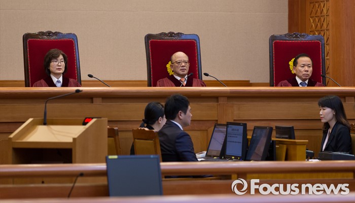 (서울=포커스뉴스) 26일 오후 서울 종로구 헌법재판소 대심판정에서 박한철 헌법재판소장이 국회선진화법 권한쟁의 심판 선고 및 통합진보당 해산결정 재심 선고를 위해 입장하고 있다.