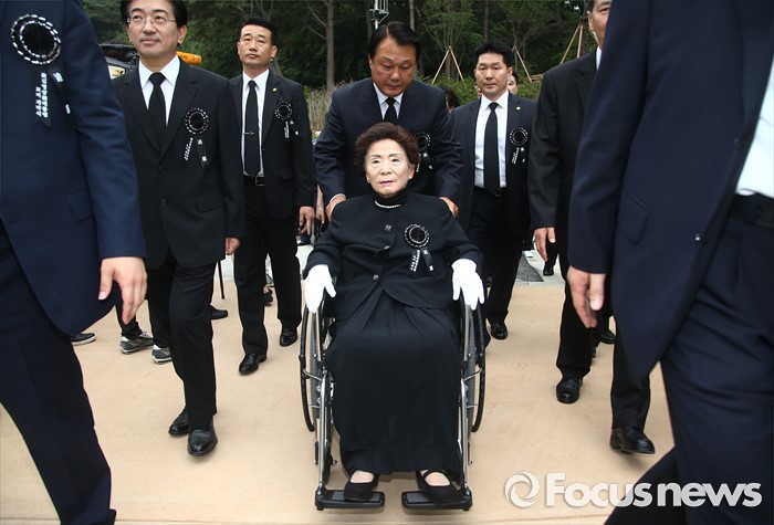 (서울=포커스뉴스) 고 김영삼 전 대통령 부인인 손명순 여사가 26일 오후 서울 동작구 국립서울현충원에서 열린 고 김 전 대통령 묘비 제막식에 참석하고 있다.