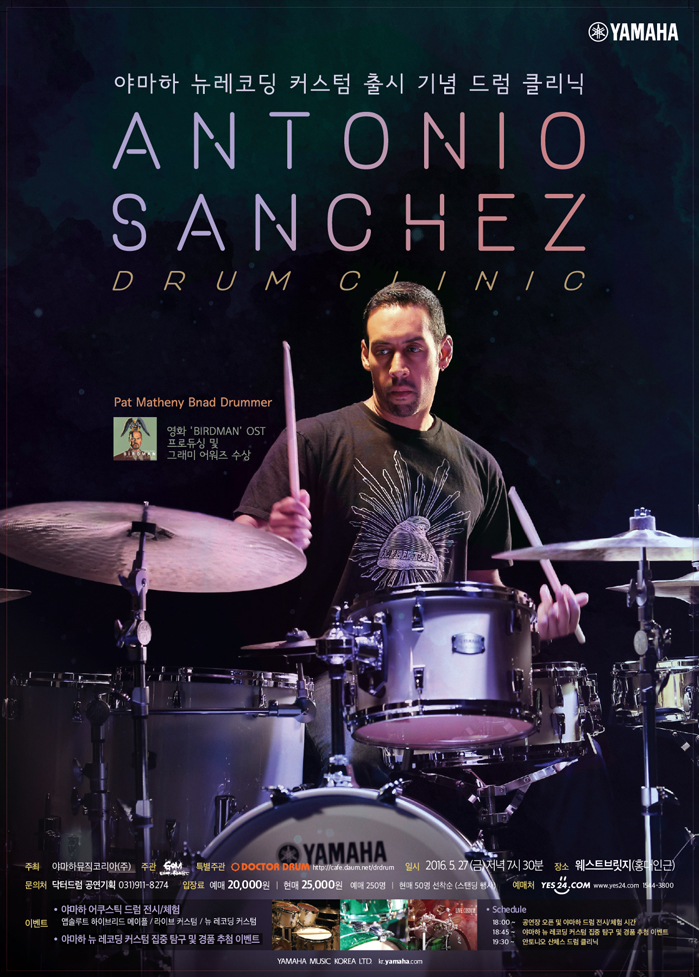 야마하 월드 아티스트인 안토니오 산체스는 미국 버클리음악대학을 졸업한 뮤지션. 세계적 그룹 팻 메스니 밴드 드러머로 잘 알려져 있다. 2015년 아카데미 작품상을 받은 영화 '버드맨' 오리지날사운드트랙(OST)을 프로듀싱해 2016 그래미 최우수 스코어상 등 각종 시상식에서 단골수상자가 되며 유명세를 떨쳤다.
